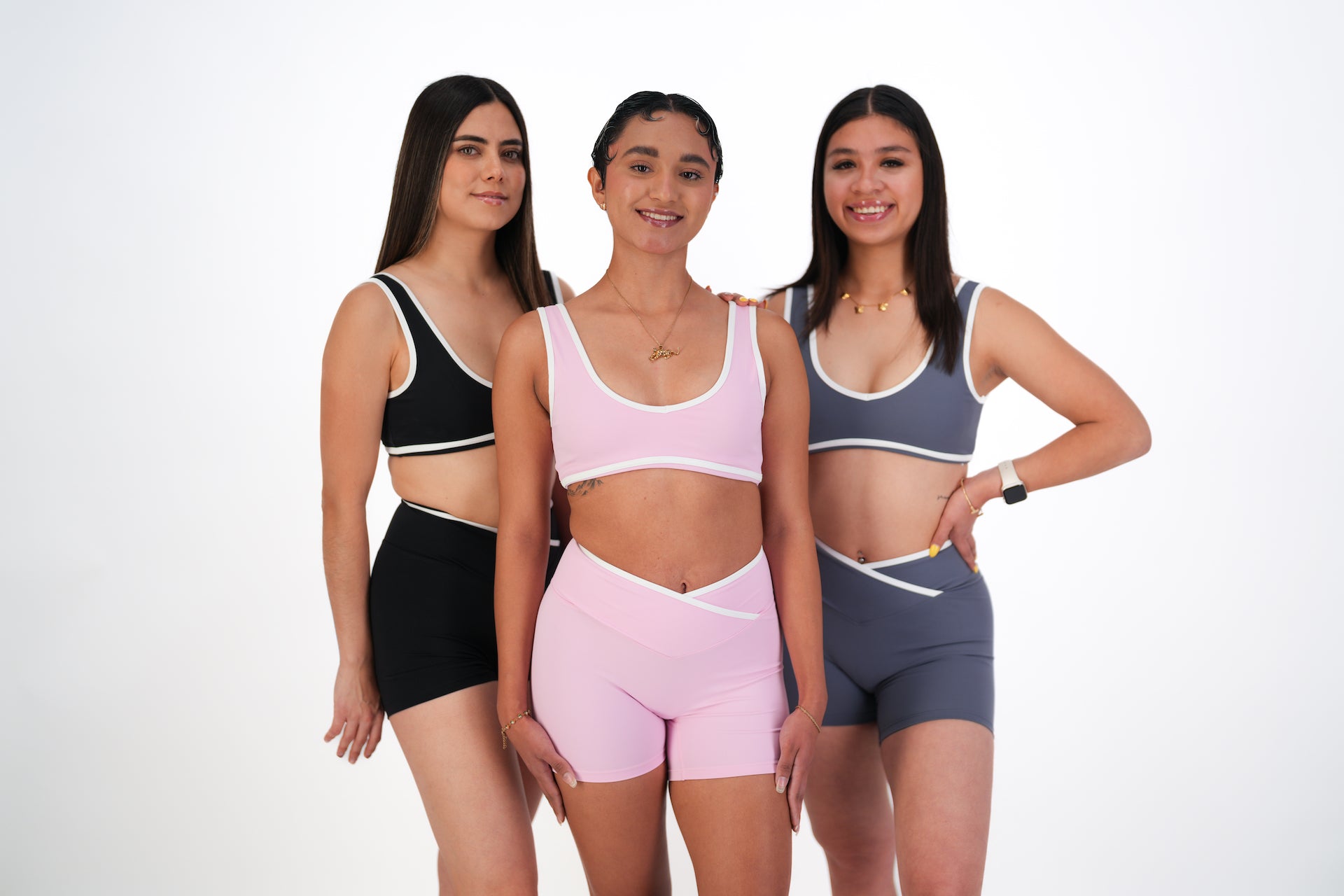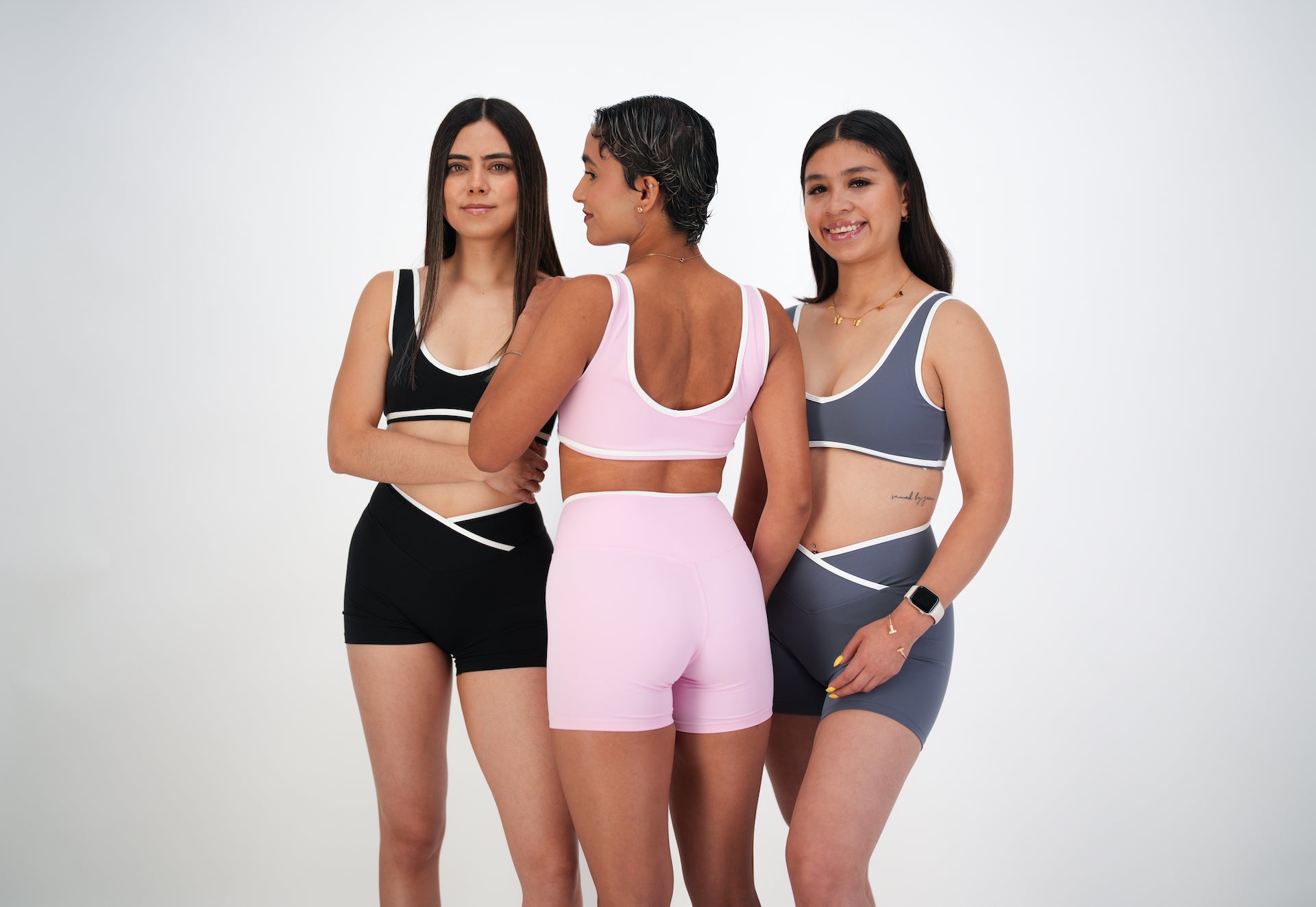 Elegancia y comodidad en una sola pieza. El set Amara combina un diseño minimalista con un toque sofisticado gracias a su resorte blanco, que estiliza la figura y aporta un ajuste perfecto. Su short tiene un efecto cruzado en la cintura, realzando las curvas y brindando un fit favorecedor. Confeccionado en una tela suave y elástica que se adapta a cada movimiento, es ideal para entrenar, hacer pilates o crear un look casual.