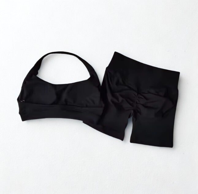 El Kora Set de Melura está diseñado para entrenamientos donde la comodidad y el movimiento son clave. Su top de cuello halter ofrece un ajuste suave con soporte medio, ideal para acompañarte en rutinas como pilates, barre, gym o entrenamientos de intensidad moderada.