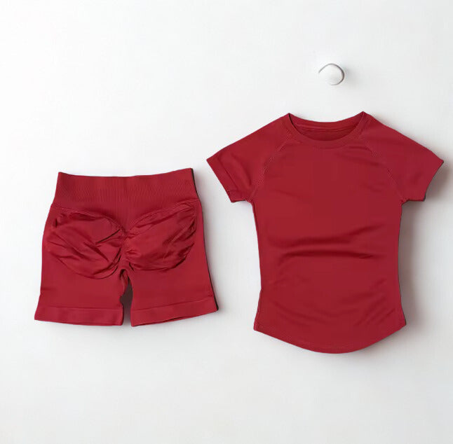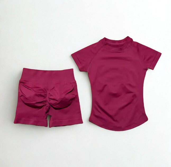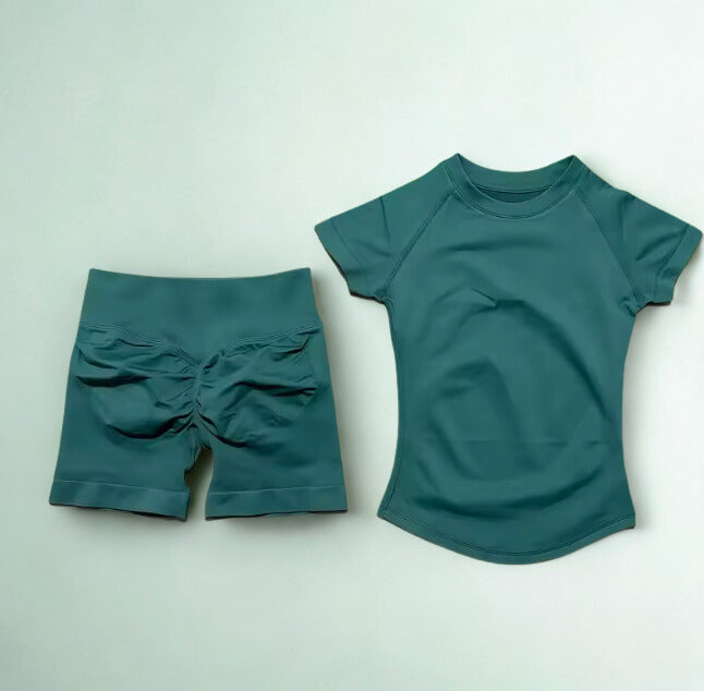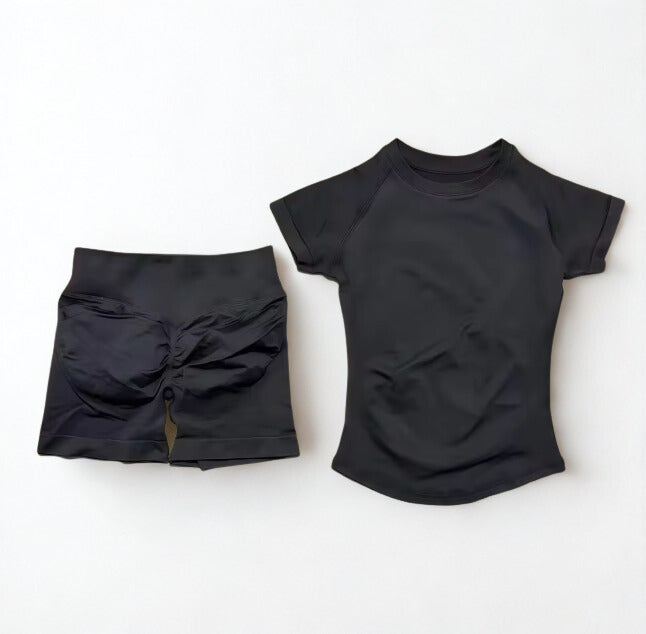 La blusa ofrece un ajuste favorecedor que estiliza la silueta sin limitar el rendimiento, mientras que el short brinda soporte y comodidad para entrenamientos de alta energía como gimnasio y hyrox.