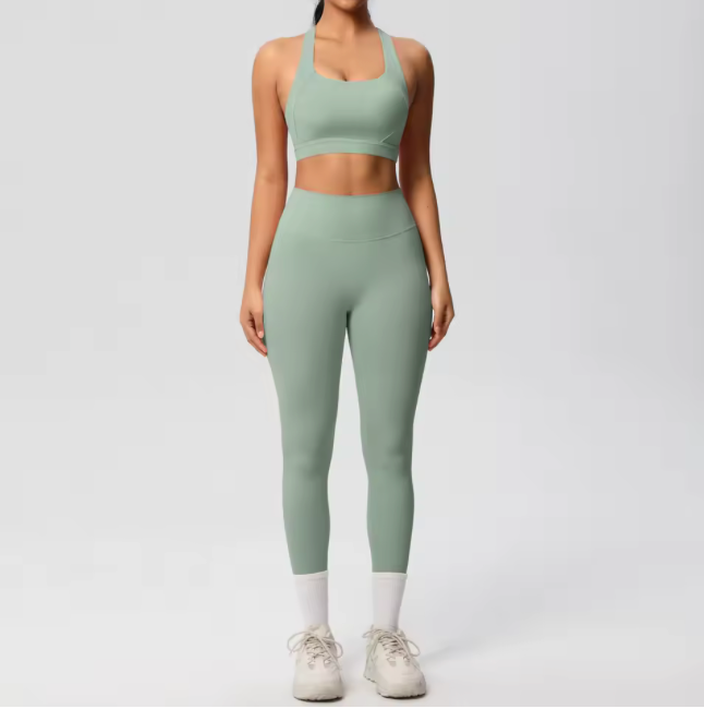 Un conjunto pensado para acompañarte en cada movimiento. El Set Sage combina un top de soporte medio con diseño halter que estiliza los hombros y unos leggings de cintura alta que abrazan el cuerpo con suavidad.