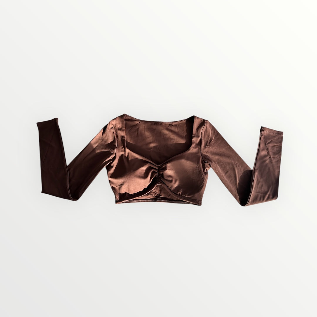 El top perfecto para verte bien y sentirte cómoda. Su tela elástica se adapta a tu cuerpo como un guante, el escote fruncido le da un toque especial y la espalda cubierta lo hace súper versátil. Además, incluye copas movibles y es transpirable, ideal para mantenerte fresca en cualquier momento. Serena es ese básico con estilo que no te querrás quitar.